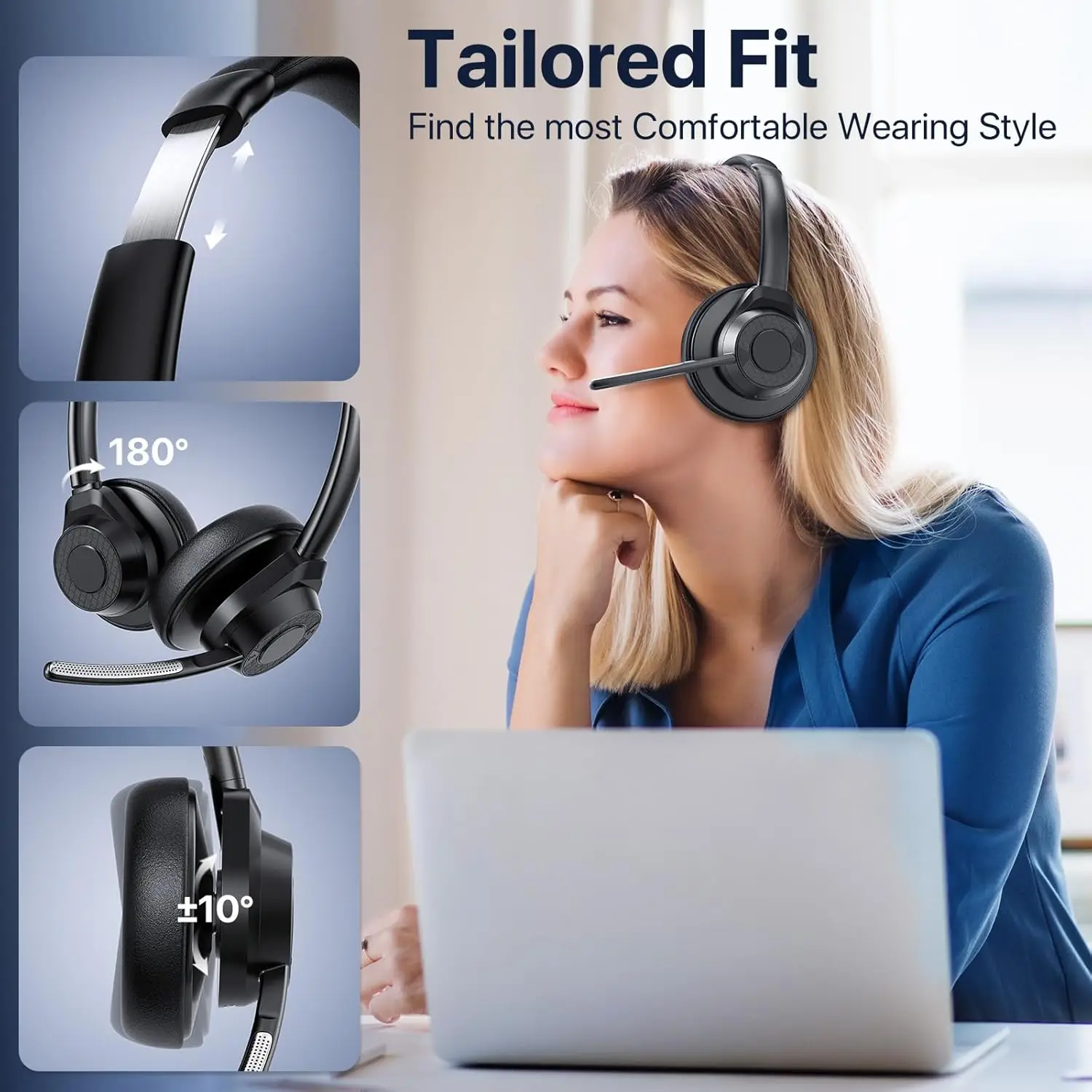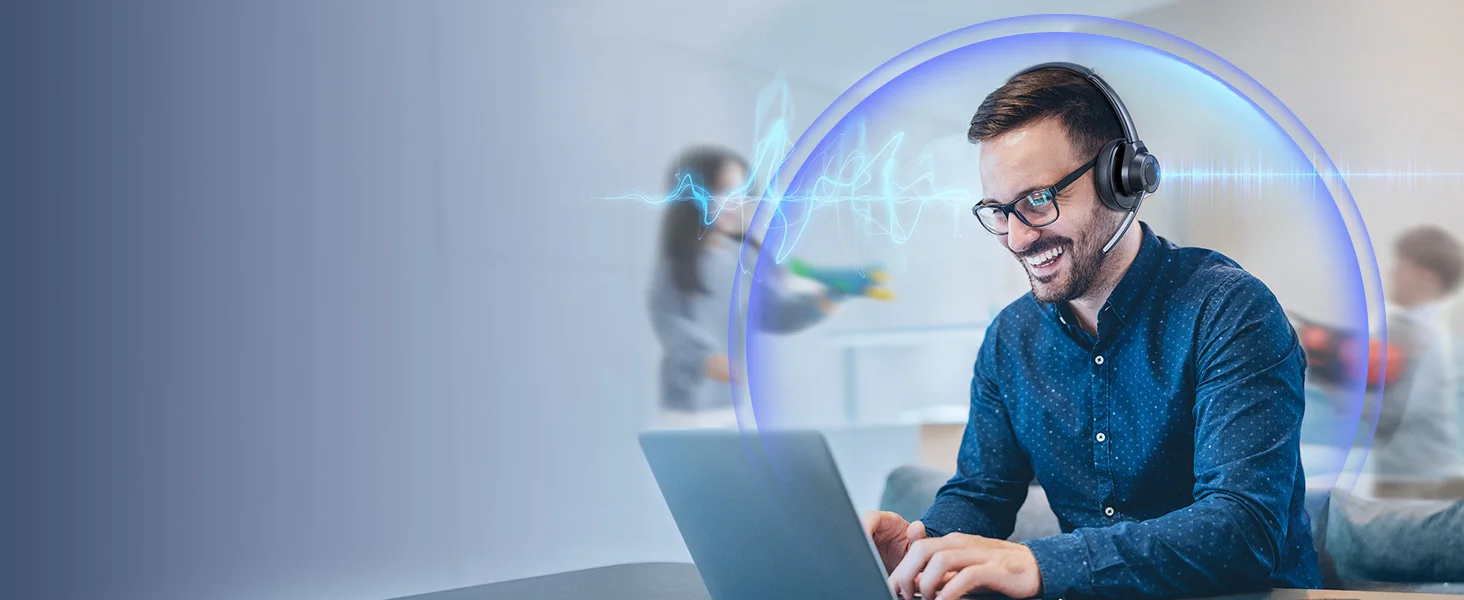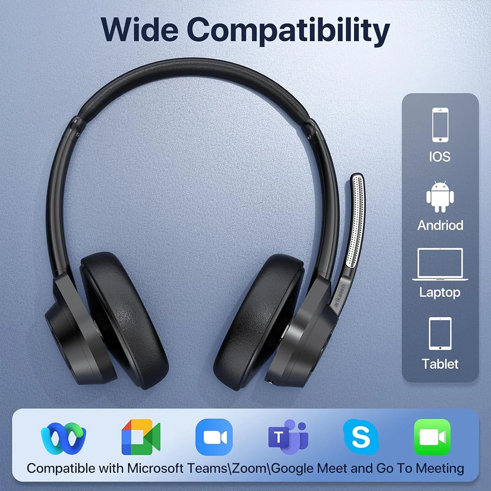 No matter where you are, our wireless headset with mic for work ensures your voice is crystal clear