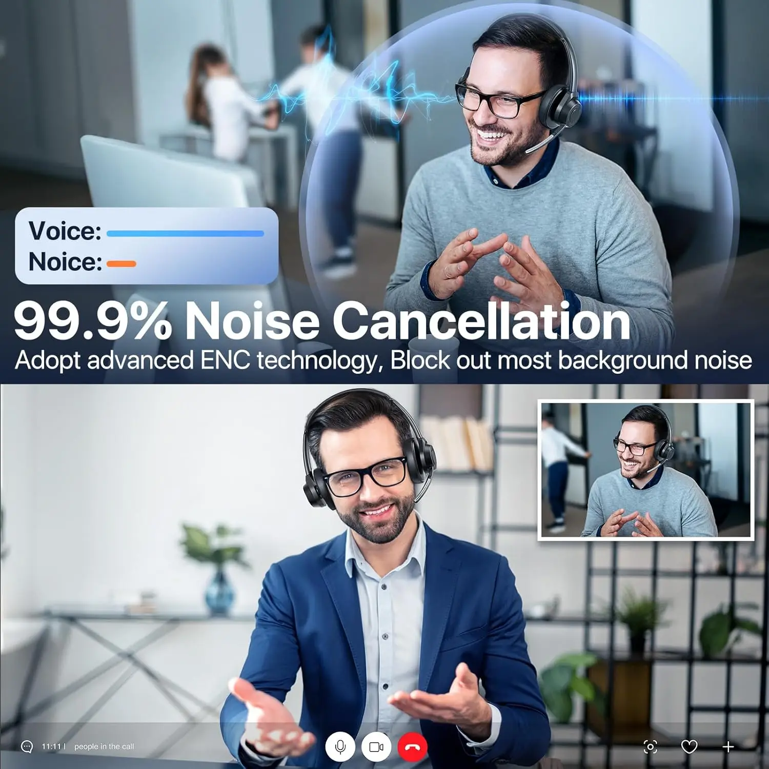 - Arikasen Bluetooth headset with mic features advanced noise-cancelling technology, blocking 99% of background noise in noisy environments like call centers, shared workspaces, or home offices. Stay crystal-clear on calls, whether you're working remotely, attending virtual meetings, or commuting. This noise cancelling headset ensures professional-quality audio for every conversation, making it one of the best headsets for noisy offices.