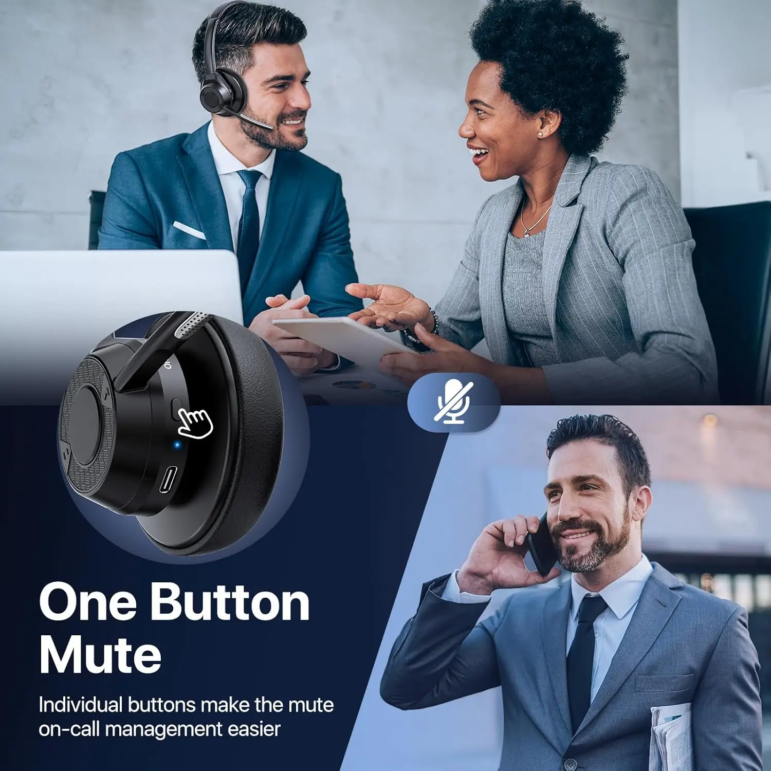 Office Bluetooth Headsets: with Mute Button