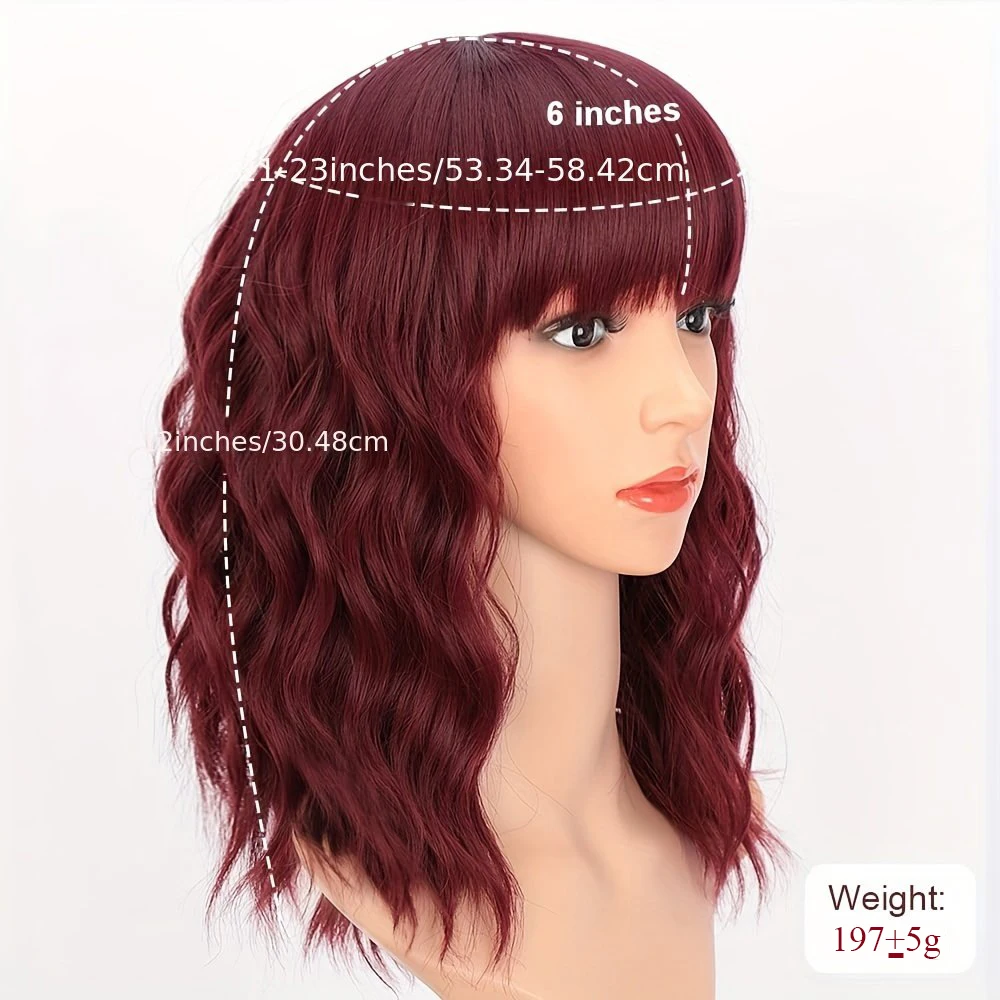 6 Colors Available, Full Head Wig with Bangs and Shoulder-Length Hair for Women, Small Wavy Synthetic Fiber Wig, Adjustable Head Circumference, Hand-Woven Wig
