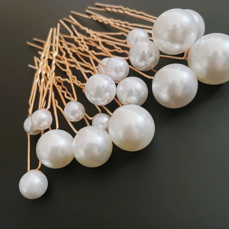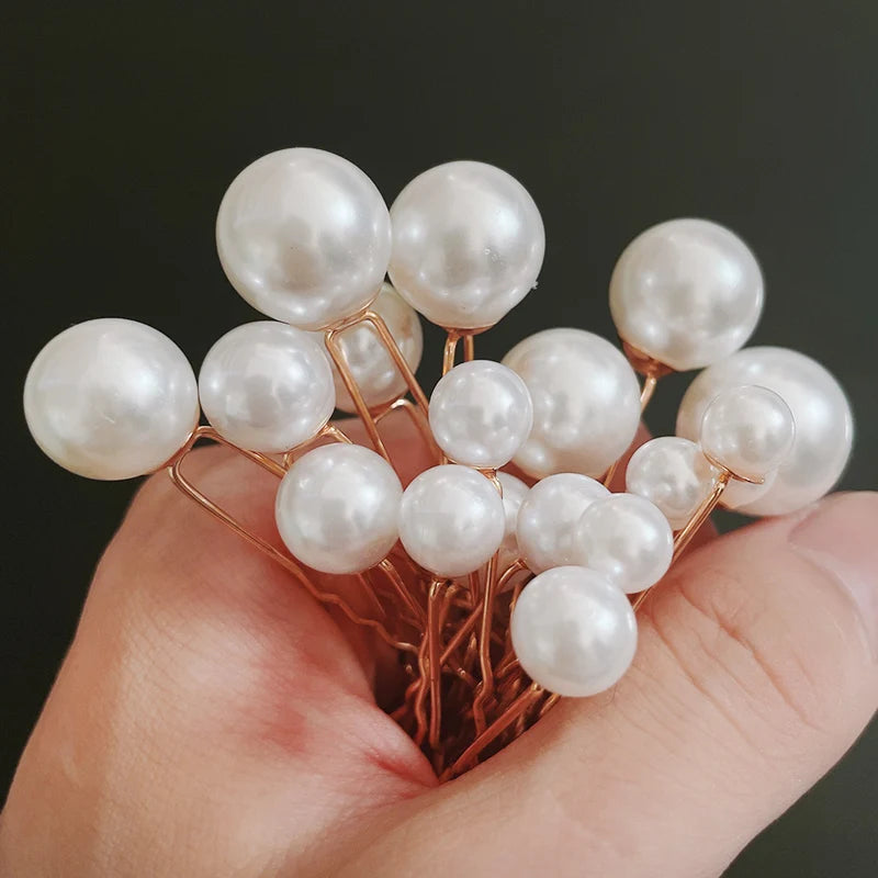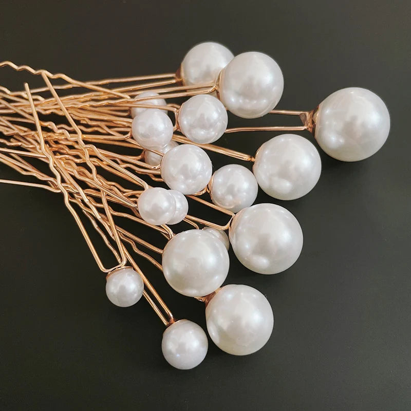 18Pcs Women U-shaped Pin Metal Clip Hairpins Simulate Pearl Bridal Tiara Hair Accessories Wedding Hairstyle Design Styling Tools