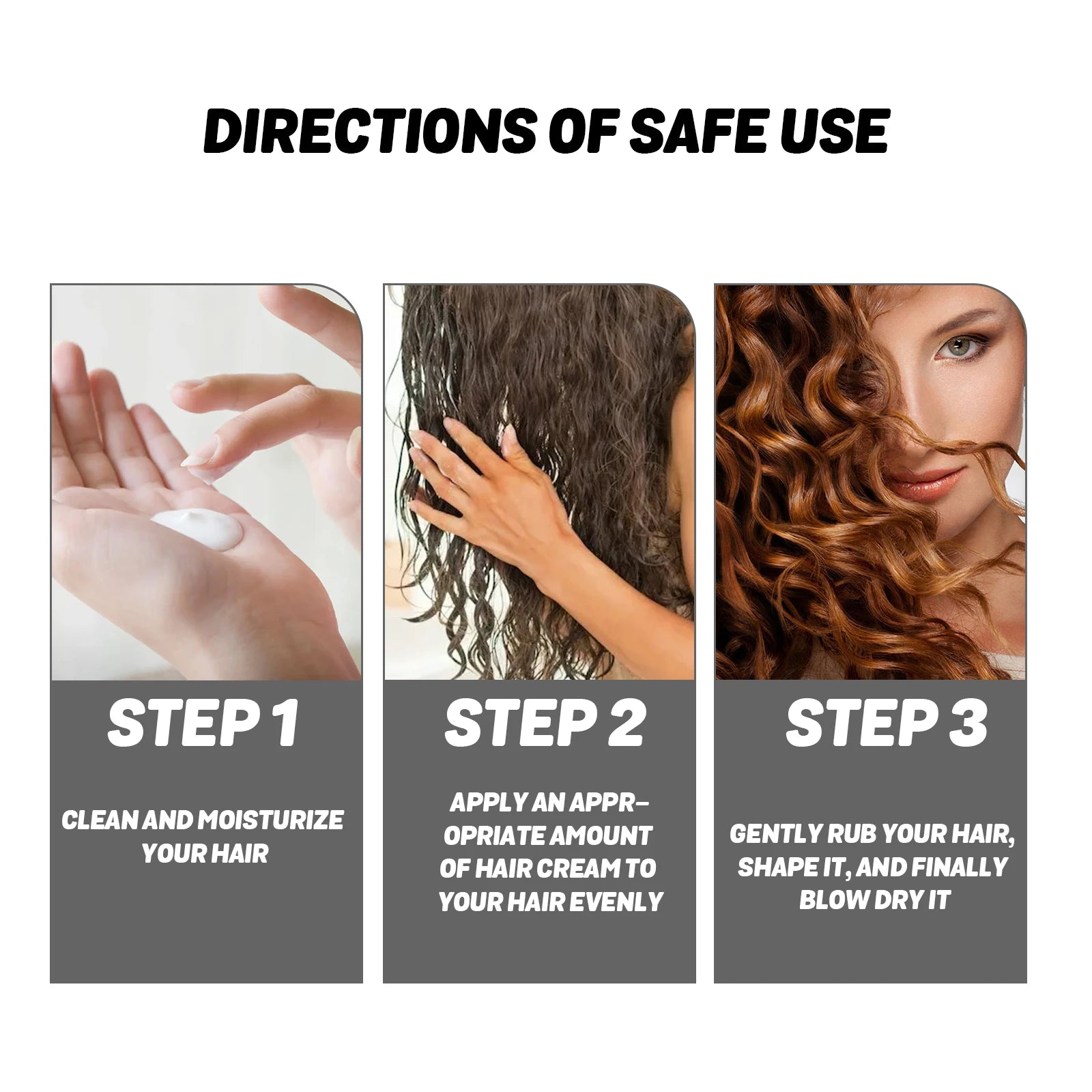 2.Apply an appr- opriate amount of hair cream to your hair evenly
