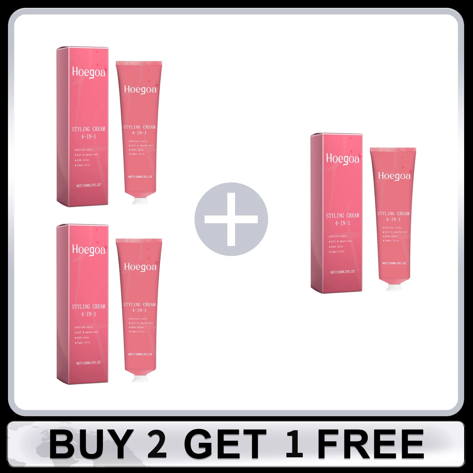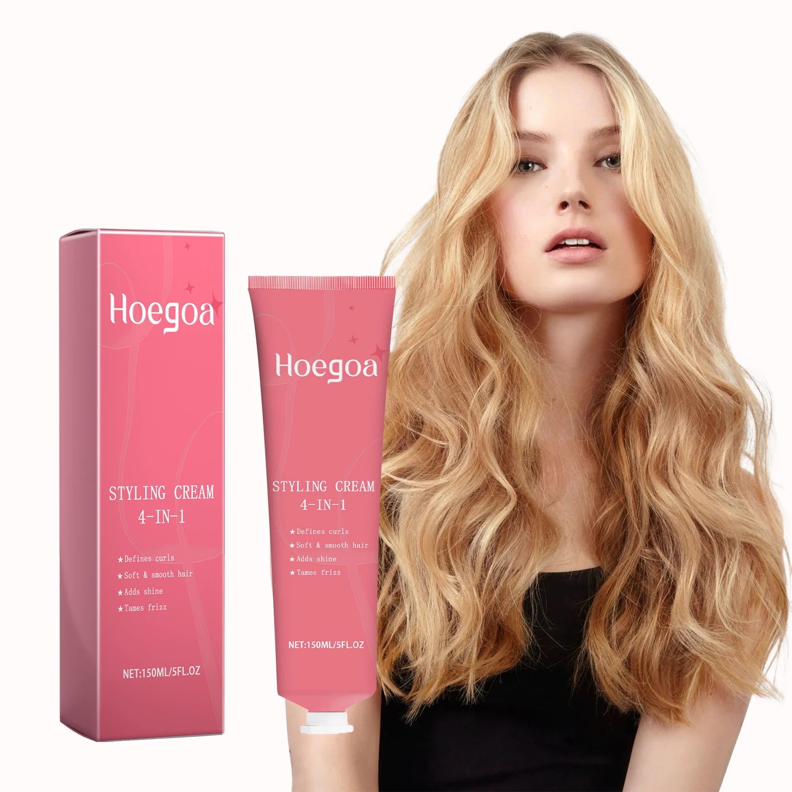 HOEGOA 4 in 1 Hair Styling Cream Add Shine Soothing Frizz Define Curls Reducing Dry Edges Control Non Greasy Smooth Hair Shaping Cream 150ml